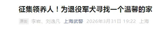 上海6只军犬即将退役,面向社会招募领养人,网友:英雄值得安稳余生!