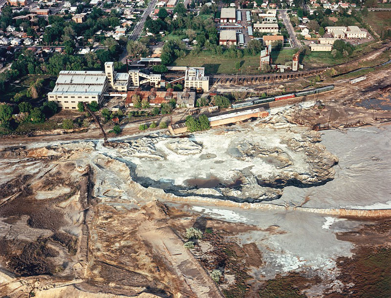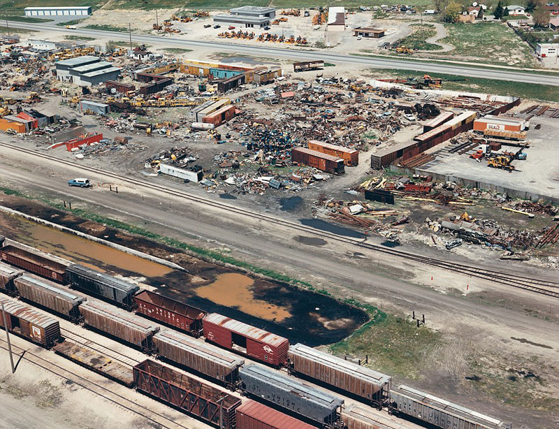 上图展示的是联合太平洋铁路公司,拍摄于爱达荷州的波卡特洛市。这个公司将油水分离产生的污泥倒在一个长150英尺(约46米)、宽40英尺(约12米)的人工湖中。