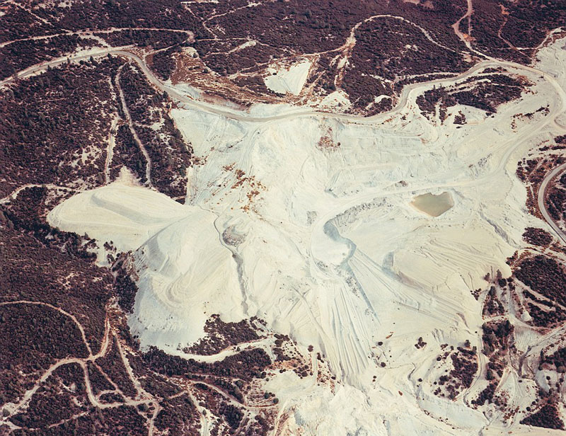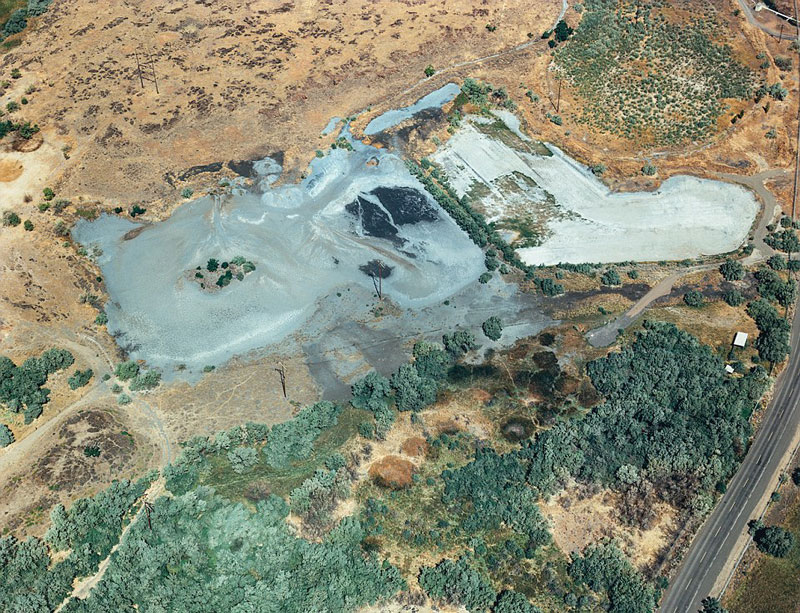 上图拍摄于加利福尼亚州的弗雷斯诺县,1963年至1980年,在科尔宁戈西北19英里(约31千米)处的石棉矿在此运营,占地16英亩(约6.5公顷)。废弃的场地包括石棉矿、一个加工厂、配套建筑以及大量石棉尾矿。污水直接排放到白河(White Creek),然后流入洛斯盖多斯河(Los Gatos Creek)。根据汉森书中介绍,洛斯盖多斯河是阿罗约帕萨杰罗(Arroyo Pasajero)的一条支流,帕萨杰罗是沿着加州渠道的一个洪水区。
