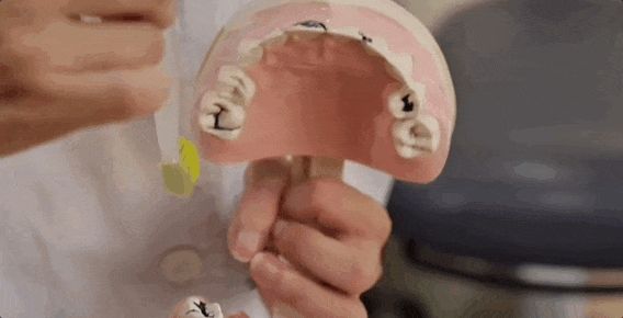 咬合面是相对容易清洁的部位,采用拉锯式来回刷即可。