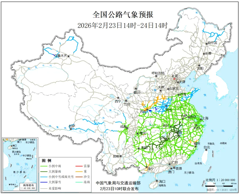23日8时至24日8时,新疆北疆北部和西部山区、陕西中部、河南西部等地局地有大到暴雪。江淮大部、江汉东部、江南北部和西部、西南地区东南部等地部分地区有中到大雨,其中,湖南中部、江西北部等地部分地区有暴雨。