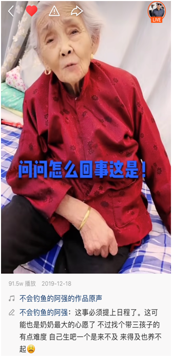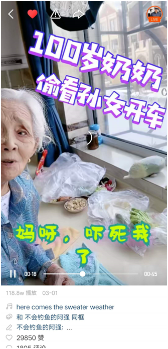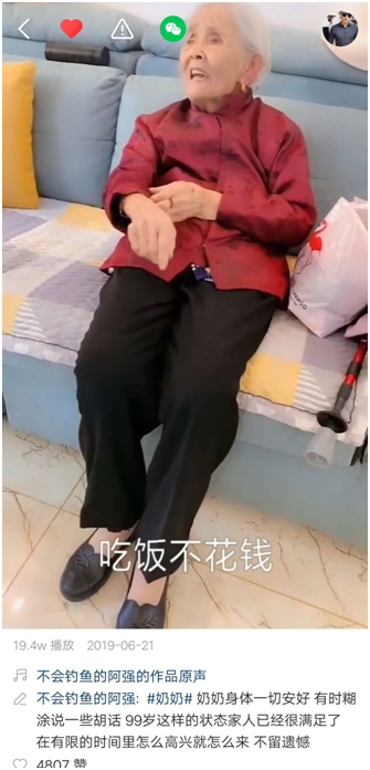 孙子用快手记录百岁豪横奶奶 半年多吸粉近80万