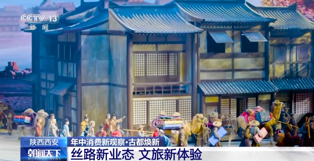 多元文化汇聚西安,带来的不仅是进口商品消费的火热,更有精神文化的滋养。台上正在演绎的实景歌舞剧《驼铃传奇》,以盛唐为背景,讲述了商贸驼队勇敢开拓丝路的故事。通过光影虚实依次呈现,伴随惊心动魄的故事,让观众大呼过瘾。