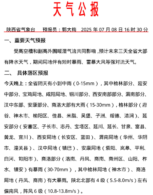 西安今明仍有雨!或伴雷暴大风、短时暴雨