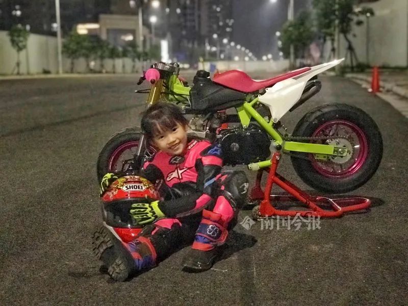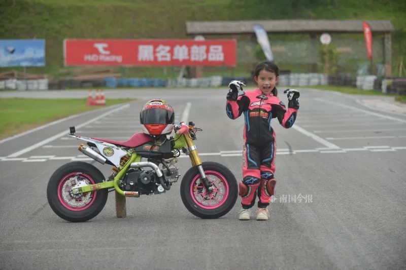 从5岁开始,佳锡每个周末都去专业赛车场地练习3-5个小时。那时体重只有42斤的她,就要独立扶起100斤左右的摩托车,但小姑娘从不喊累。