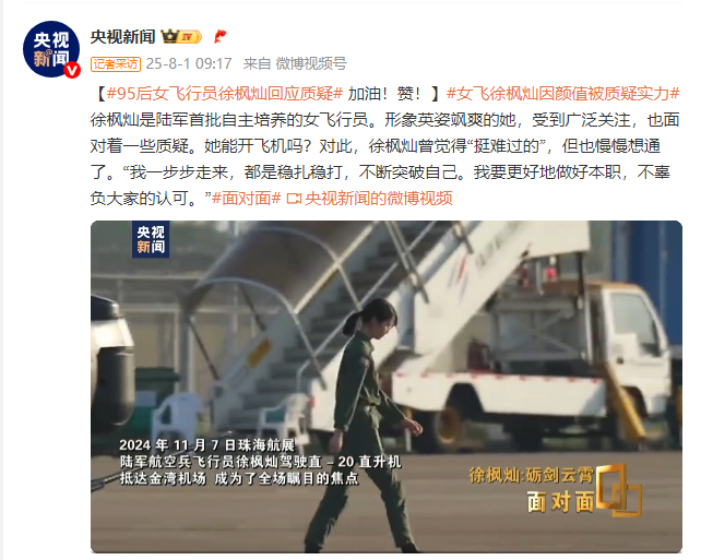 徐枫灿是陆军首批自主培养的女飞行员。形象英姿飒爽的她,受到广泛关注,也面对着一些质疑。她能开飞机吗?对此,徐枫灿曾觉得“挺难过的”,但也慢慢想通了。“我一步步走来,都是稳扎稳打,不断突破自己。我要更好地做好本职,不辜负大家的认可。”