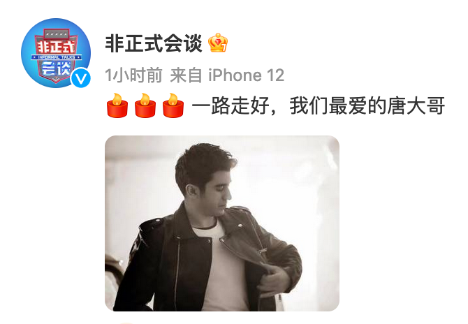2月10日上午,《非正式会谈》节目组官博发文悼念:一路走好,我们最爱的唐大哥。