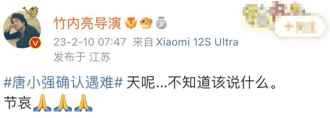 唐小强多位好友,《非正式会谈》节目嘉宾穆小龙、功必扬、天乐等人发文悼念。