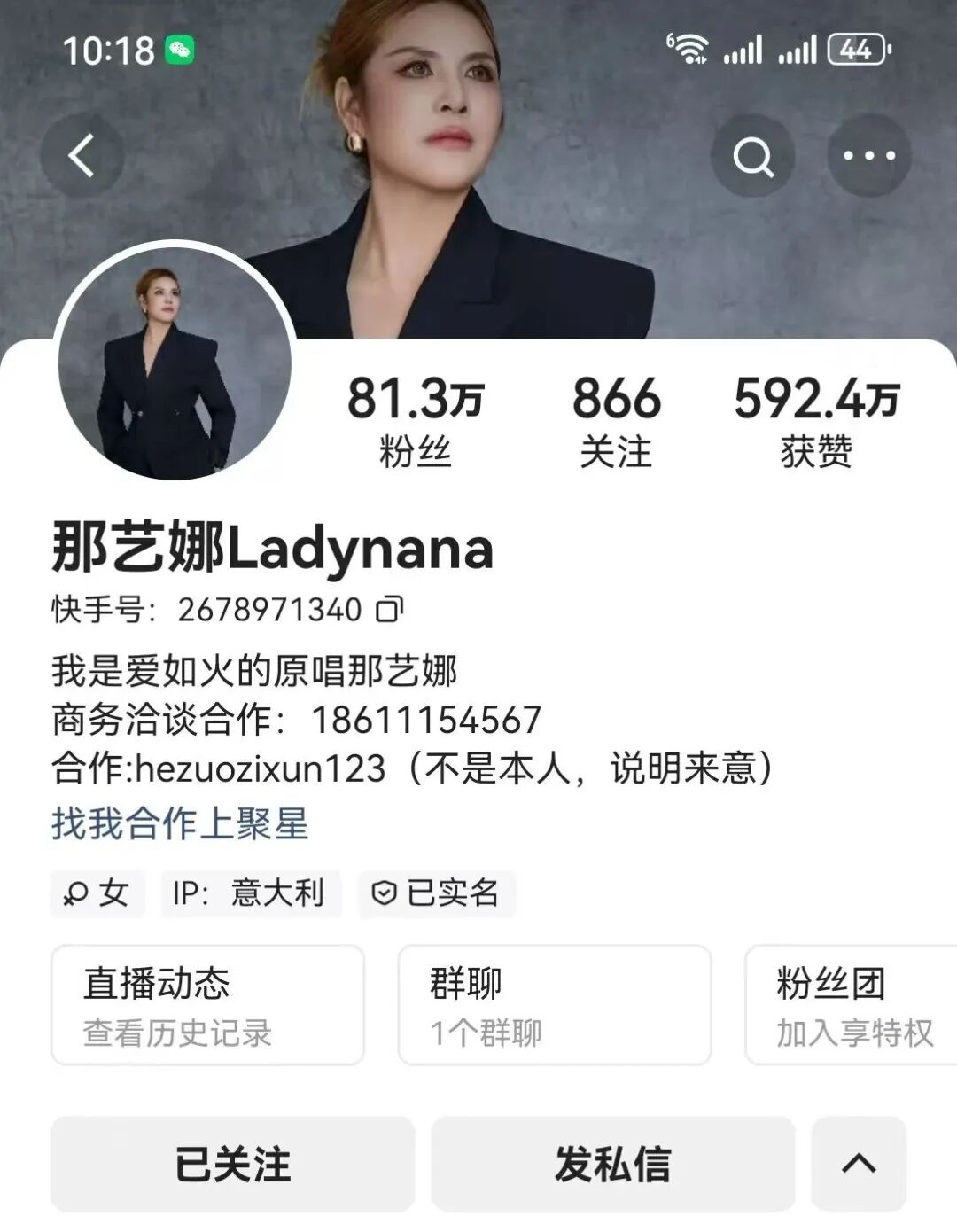 那艺娜多个账号被禁止关注,视频已清空!