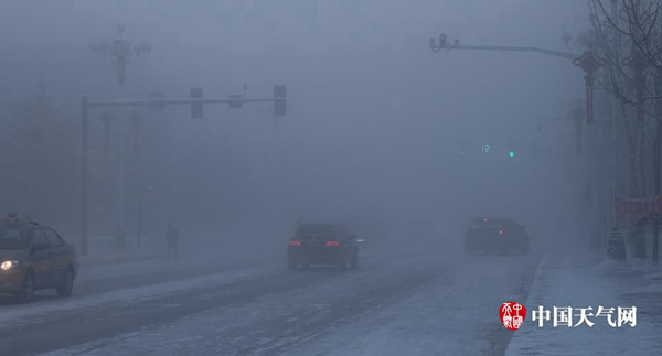 黑龙江漠河位于我国最北端,冬季这里的气温能低至-40℃,当出现冰雾时,能见度甚至不足50米。