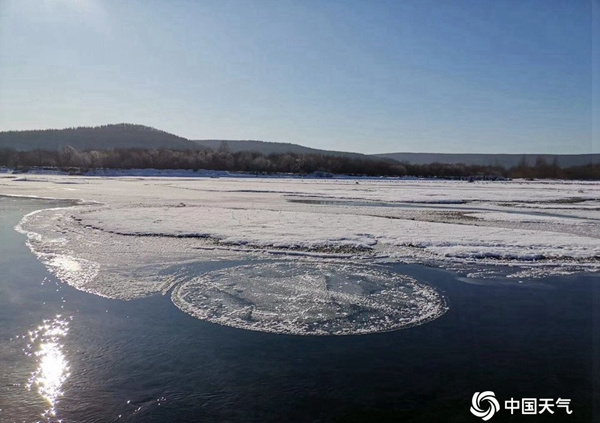 在内蒙古根河等地,冬日的河面上会出现一种神奇的现象,一个仿佛是用圆规画出来的圆形冰盘在河中自转,冰盘有大有小,在2020年就出现了直径6米的冰盘。