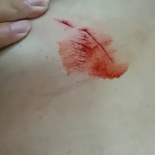 由于鲅鱼极为生猛,当时钓友“赤膊上阵”正试图将其控制,鲅鱼却突然奋力挣扎。它在剧烈摆动身体的同时,用锋利牙齿瞬间咬中钓友左胸部。钓友当场感到剧痛,周围人员也一时惊慌失措。待将鲅鱼彻底制服后,发现该钓友左胸处有一创口,伴有血迹,场面令人感到揪心。