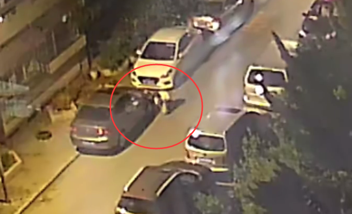 男子大晚上蹲在车前干这事......视频拍下全过程