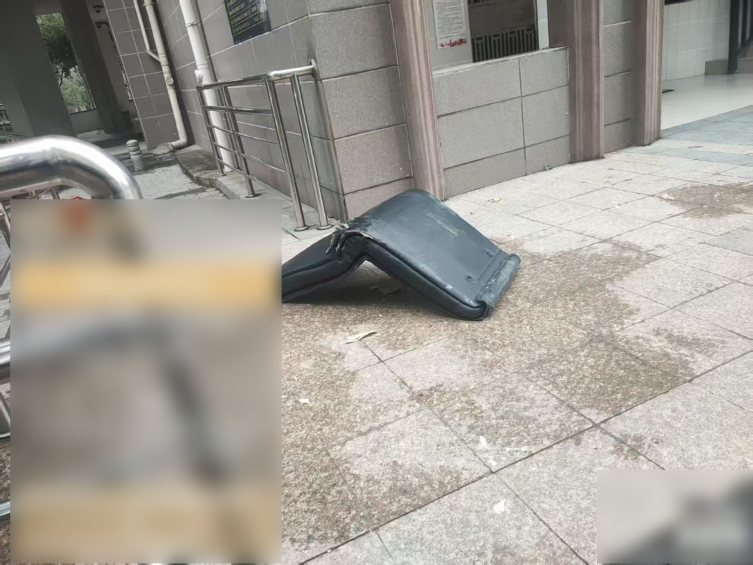 近日,湖北黄石某小区发生惊险一幕,一把重约11公斤的皮椅从天而降,险些砸中路过居民。