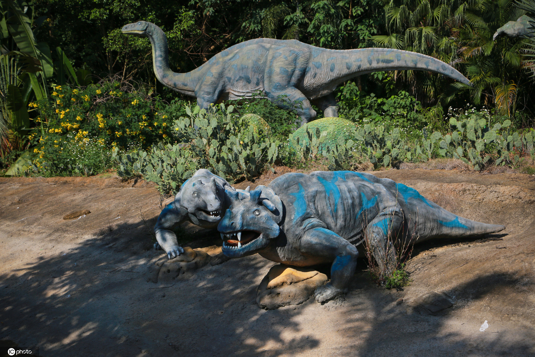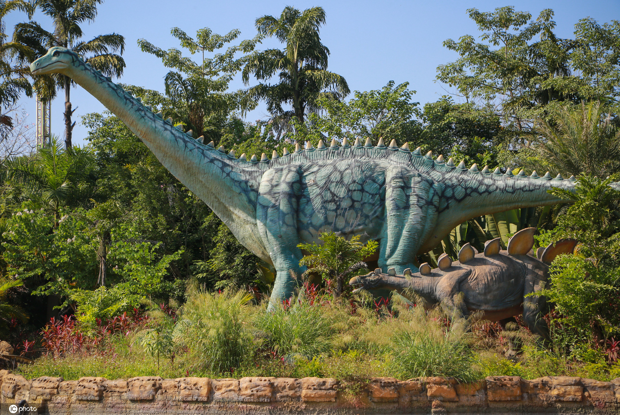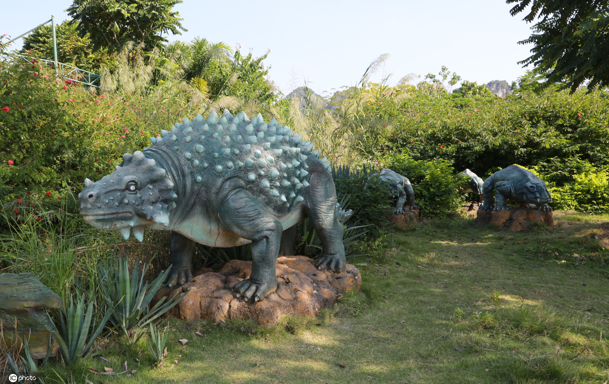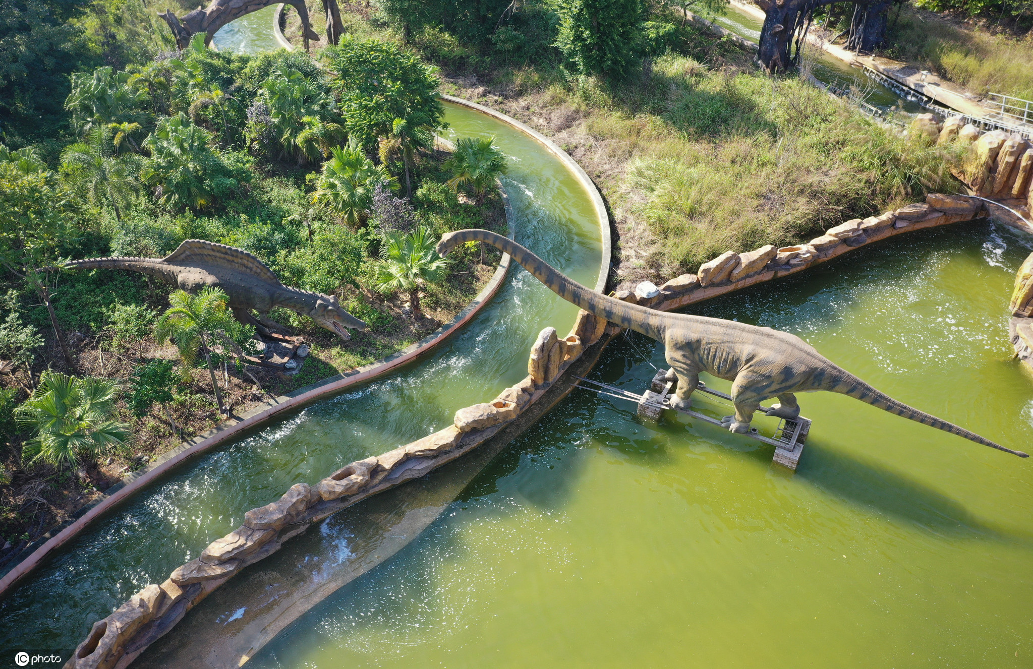 扶绥县岜盆乡附近有一座占地6000亩的大型恐龙主题乐园。公园通过大型造景瀑布、河流、巨树、荒野,营造了逼真的远古环境,霸王龙、剑龙、甲龙、角龙等“远古生物”张牙舞爪争雄霸、栩栩如生。漫步其中,丰富的植被环绕,形态各异的恐龙聚集,仿佛置身于宏大的史前恐龙国度。 公园内分布上千头形象逼真的机械内核恐龙,通过不同区域、不同时期的恐龙进行演绎展示,以最直观的方式向人们展示了恐龙的不同习性。这里也因此被称为现实版《侏罗纪公园》。 广西扶绥县素有“中国恐龙之乡”之称,是世界最大的蜥脚类恐龙的发现地,也是目前世界上储藏有恐龙化石资源最多的地方。现已公布的广西特有已命名的恐龙化石有赵氏扶绥龙、扶绥中国上龙、何氏六榜龙、大石南宁龙、广西大塘龙、右江清秀龙,另有已出土化石的禽龙、鹦鹉嘴龙和真蜥脚类恐龙等。