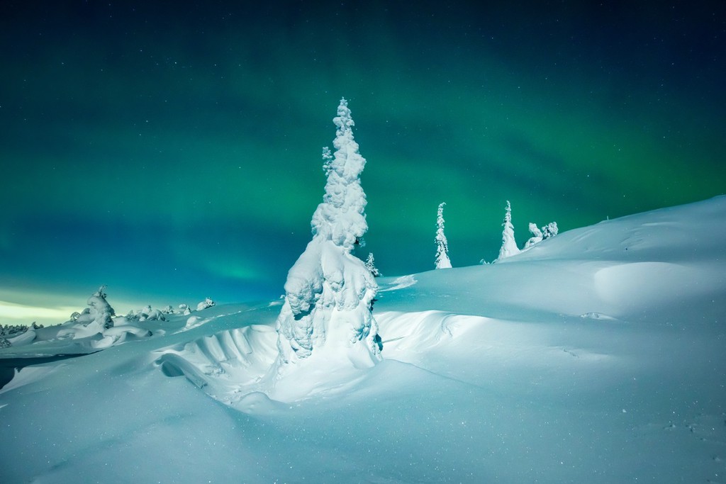 俄罗斯摩尔曼斯克现“雪树极光”奇景 宛如童话世界
