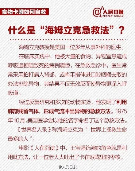 这!是!错!的!用海姆立克急救法!即“利用肺部残留气体,形成气流冲出异物” 的急救办法,数百万人因此受益。