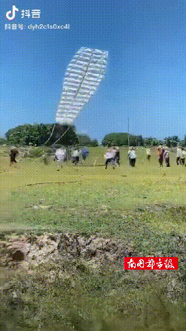 端午期间,记者发现,万宁一些村民在朋友圈中晒出的风筝越来越大。从他们分享的视频里也能体会到超大风筝的威力:一个宽约几米,长数十米的风筝,连着一条长长的风筝线开始放飞。当风筝起飞后,几名成年男子抓住风筝绳子就被弹飞而起,若不及时松手,很可能被大风筝一起带飞 ,很是危险。