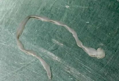 从丽姨脑袋里抓出来的活虫,已有约8cm长。