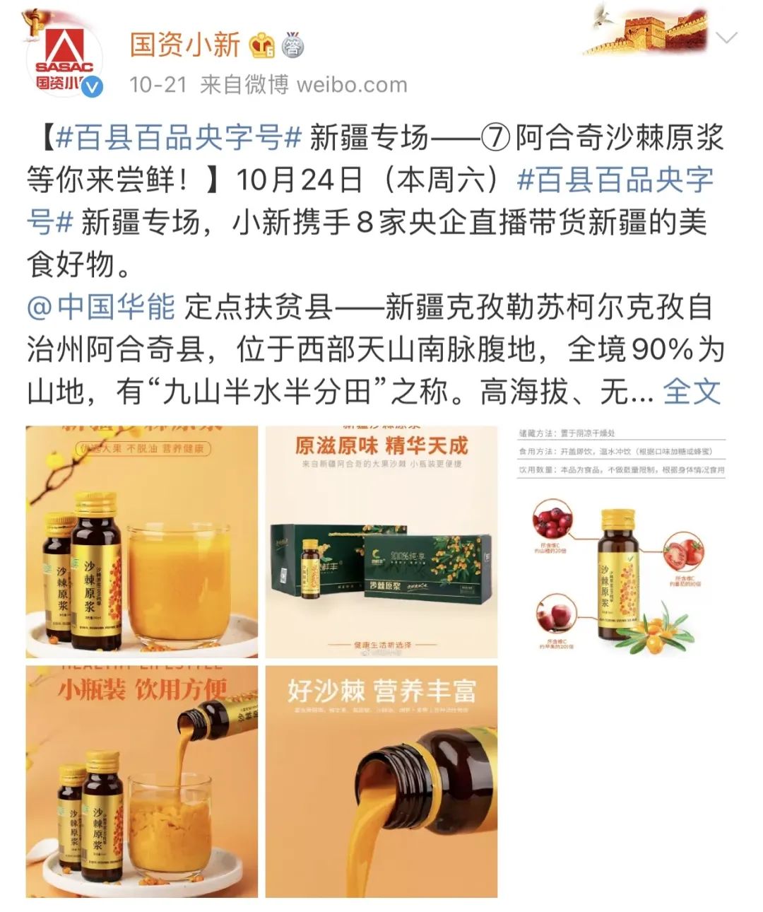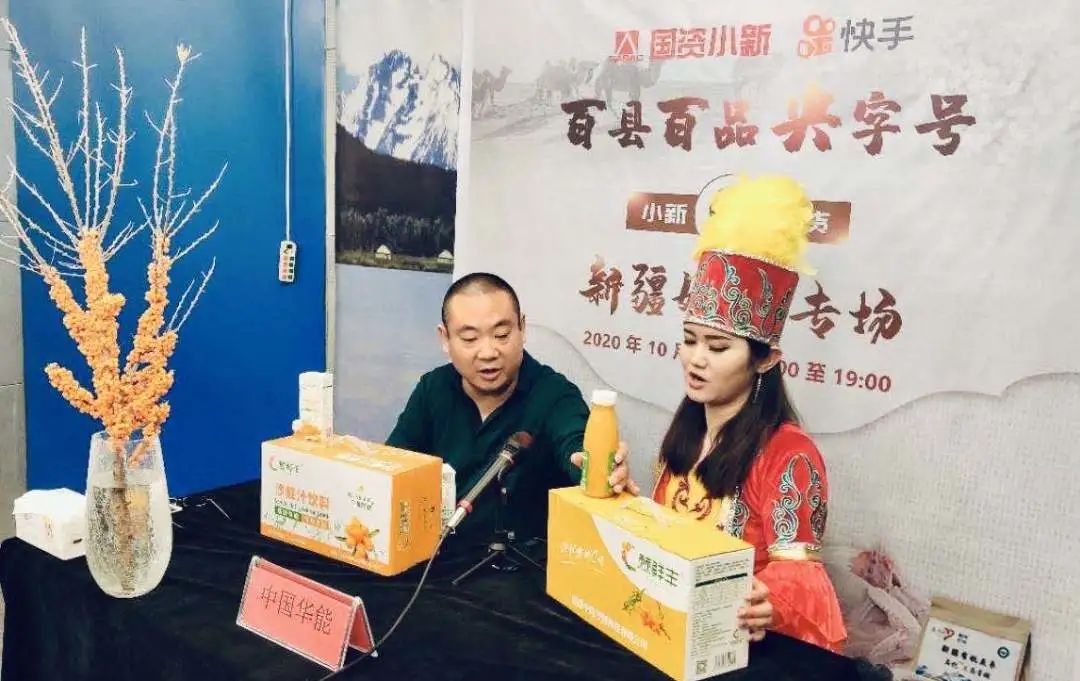 ▲中国华能派驻新疆克州阿合奇县委常委、挂职副县长顾守荣,为网友推荐维C满满的新疆沙棘原浆。