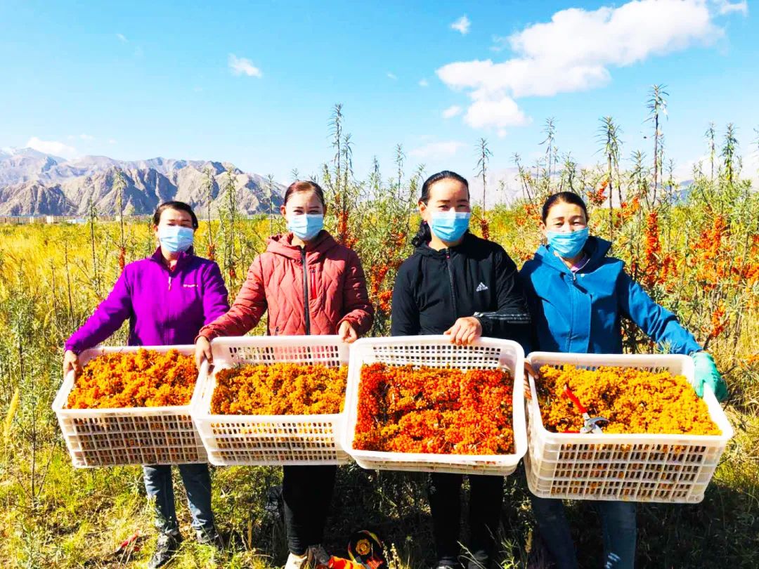 ▲在中国华能帮扶的阿合奇县,贫困户通过沙棘采摘,劳动致富,收获满满。