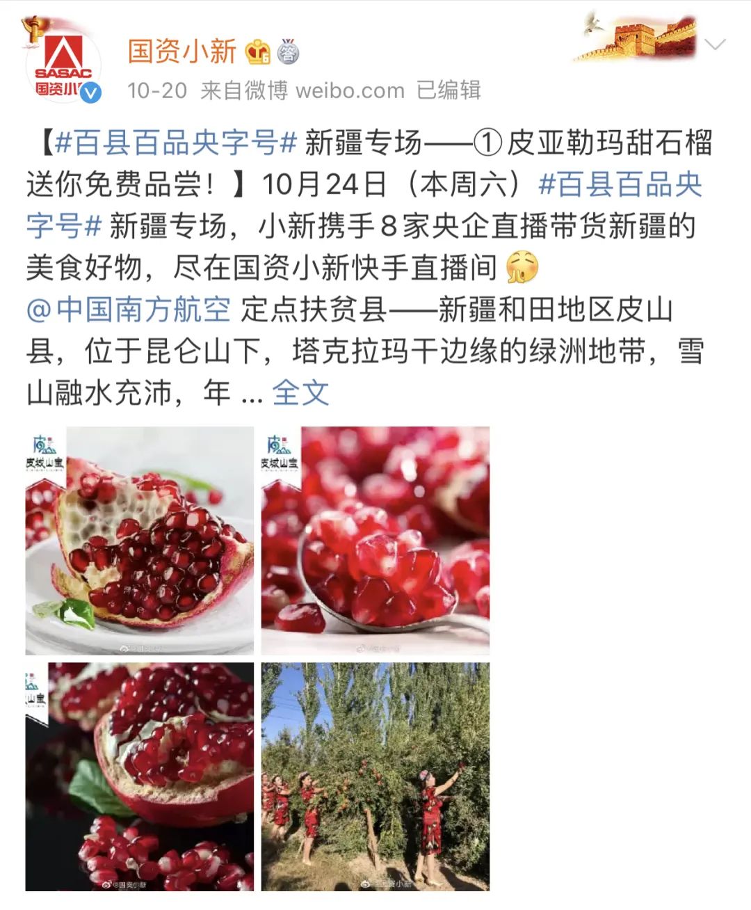 ▲ 中国南方航空派驻新疆和田地区皮山县挂职副县长周文,向网友推荐“颗颗甘甜似蜂蜜”的皮亚勒玛甜石榴。