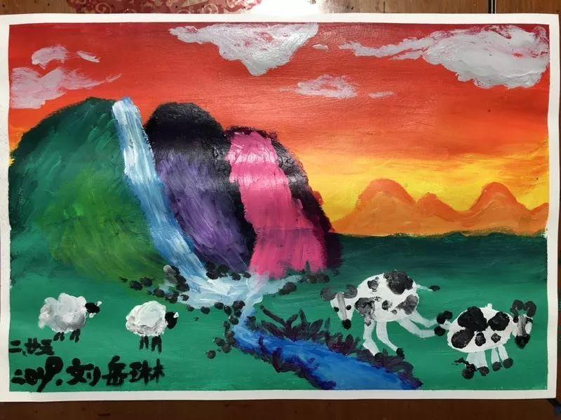 两幅画的作者都是国家电投碳资产公司员工的子女,可爱的刘岳琳小朋友说:“世界是多彩的,保护环境,让风吹草低见牛羊的景象永驻们的家园!”