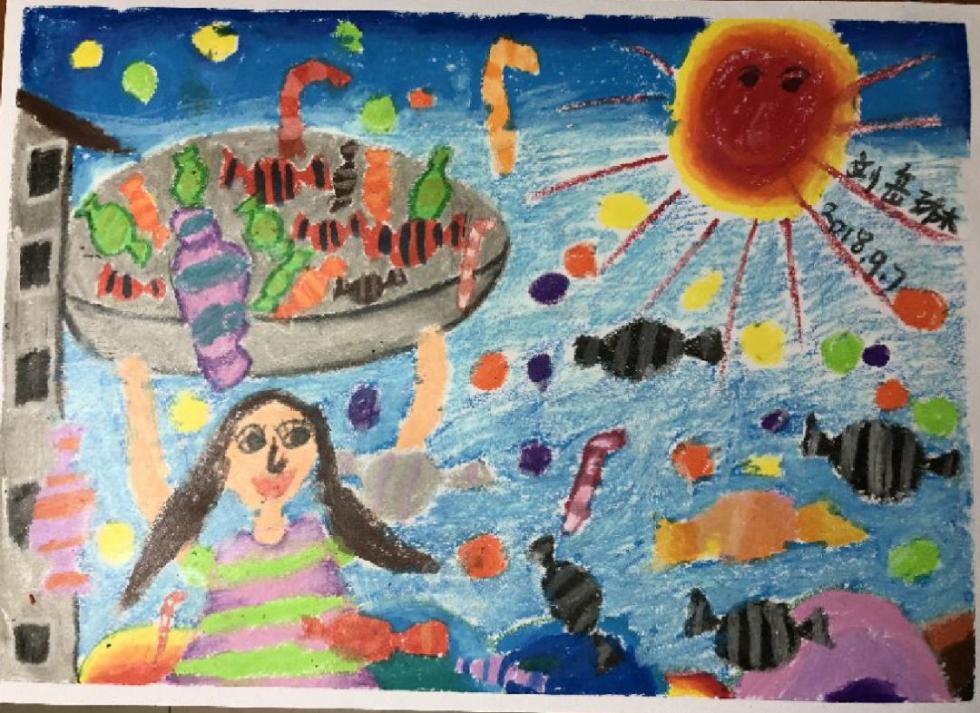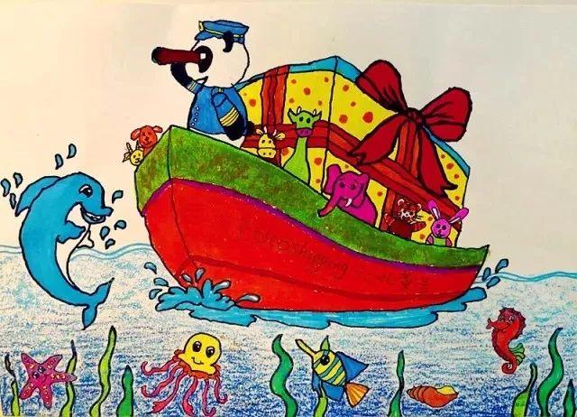6岁的小朋友吴泽远,父母都是中远海运集团的员工。他的画作题目为“梦想起航”——这是一次期盼已久的梦想之旅,熊猫船长带着陆地上动物朋友们漂洋过海,在绿色航线上与海洋里的伙伴们相遇,它们相爱相敬,开启了一段奇幻航程。