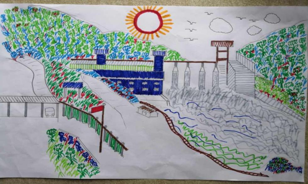 这是国家电投碗米坡电厂员工的孩子,6岁的杨镇屿小朋友用花生创作的手工艺作品,还有他眼中妈妈工作的地方。