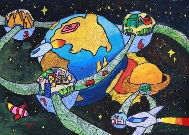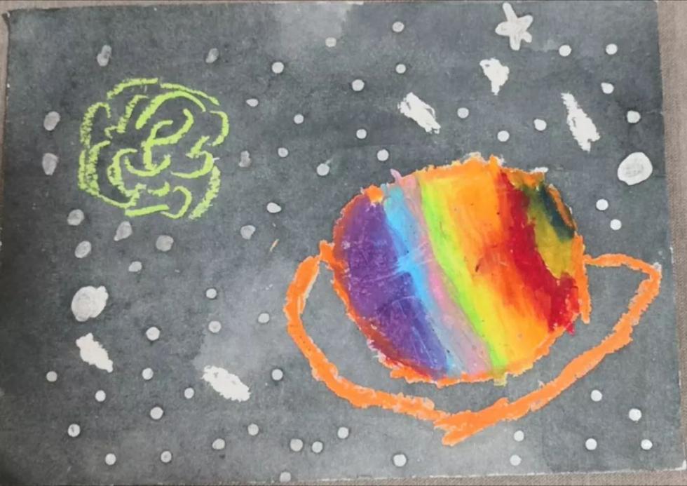 大家好,我叫何心远,今年11岁,这是我用水粉和油画棒绘制而成。我希望以后的地球不受到人类的迫害,而像图中的彩虹星球一样,变得越来越充满生命力。