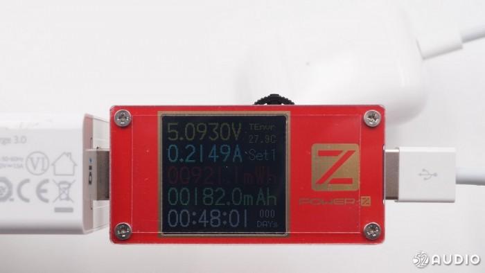 我爱音频网采用ChargerLAB Power-Z KT001进行有线充电测试,充电电流214.9mA。