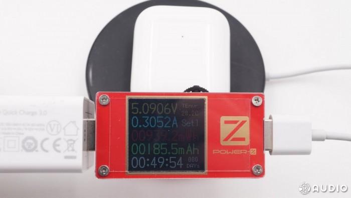我爱音频网采用ChargerLAB Power-Z KT001进行无线充电测试,充电电流305.2mA。