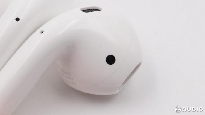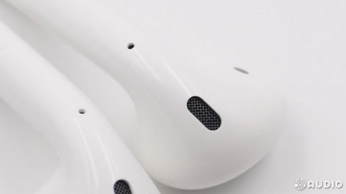 在耳机柄部背后的圆形小孔内各藏着一颗麦克风。