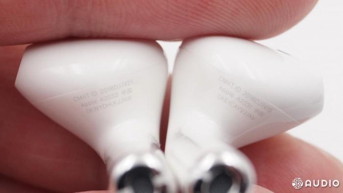 耳机信息印刷在腔体的底部,在使用时几乎不会注意到的一个地方,两只耳机的型号分别是A2031和A2032。