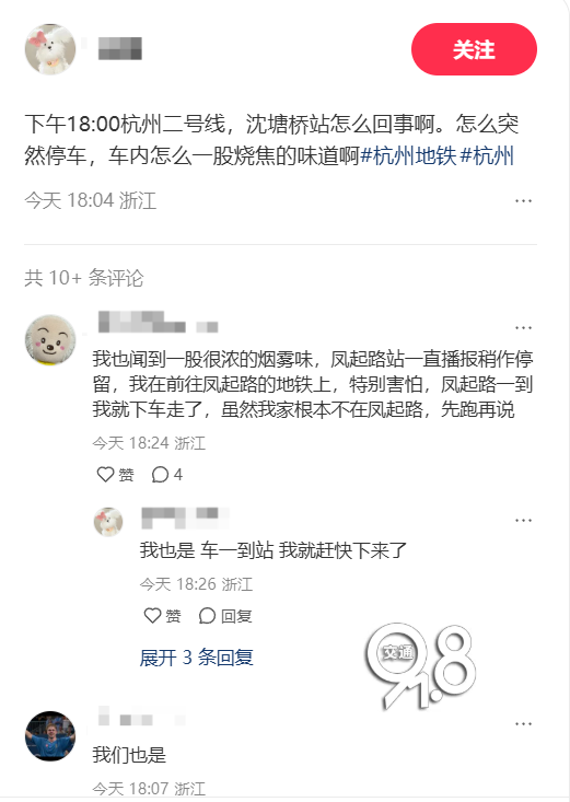 杭州地铁2号线突发!列车清客,有人闻到烧焦的味道……最新回应