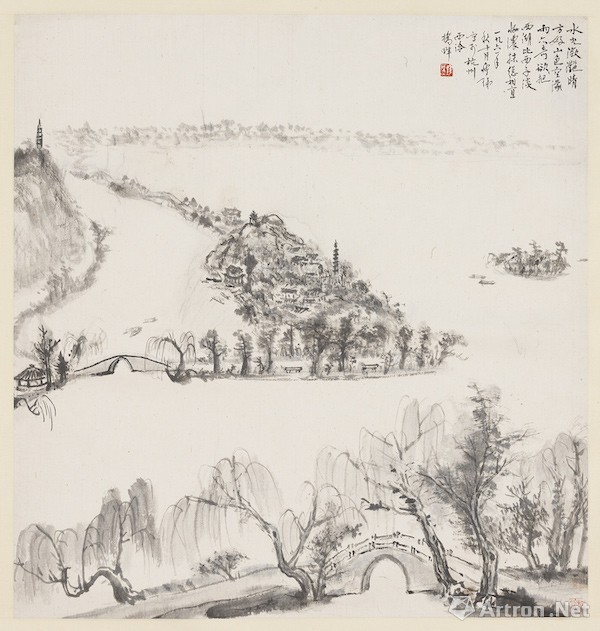 民国 钱厓 《水光潋灩》轴 55cmx52.5cm