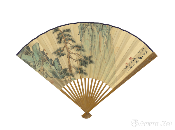 民国 张大千 《华山古松》成扇 18cmx44.8cm