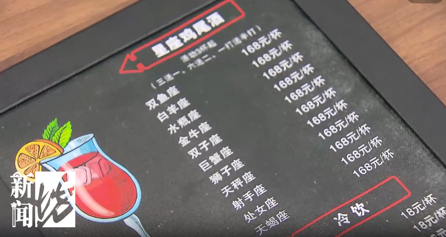 普通消费者进入酒吧只会拿到普通菜单,专门接待“酒托女”的“服务员”,则会提供带有“星座鸡尾酒”的特殊菜单,专供犯罪嫌疑人食用。其中,“星座鸡尾酒”标价为168元一杯,“12星座套餐”则为2016元一打。实际上,它们都是用廉价洋酒加红茶或果汁等勾兑后的饮品,成本仅几元一杯。