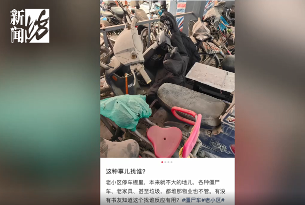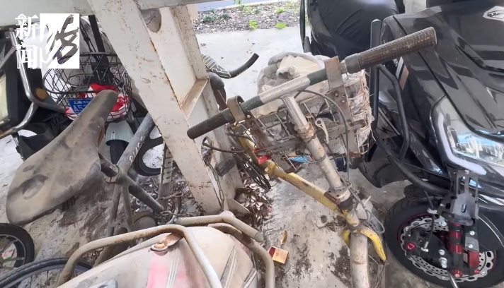 记者在尤阿姨家楼前车棚看到,这里有4辆长期无人使用的非机动车停放,车身锈迹斑斑,积满了厚厚的灰尘。尤阿姨说,有时候实在没办法,她就把落满灰尘的僵尸车挪到一边。“挪车子之前实际上我窝了一肚子的火,本来也不想挪的,那小孩要上班要用车,没办法,那就挪” 。