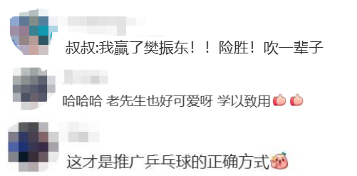 他们都是基础非常好,一看就是有几十年球龄的这样一批老球迷,"小胖"我估计他也是吃了一惊,居然能够和70来岁的老大爷打得有来有回,我相信这不是少数,在上海有一大批这样的老球迷和老的乒乓球爱好者,我也希望未来年轻的一代能够接上老一代的班,能够有更多的人参与进乒乓球这个运动项目。