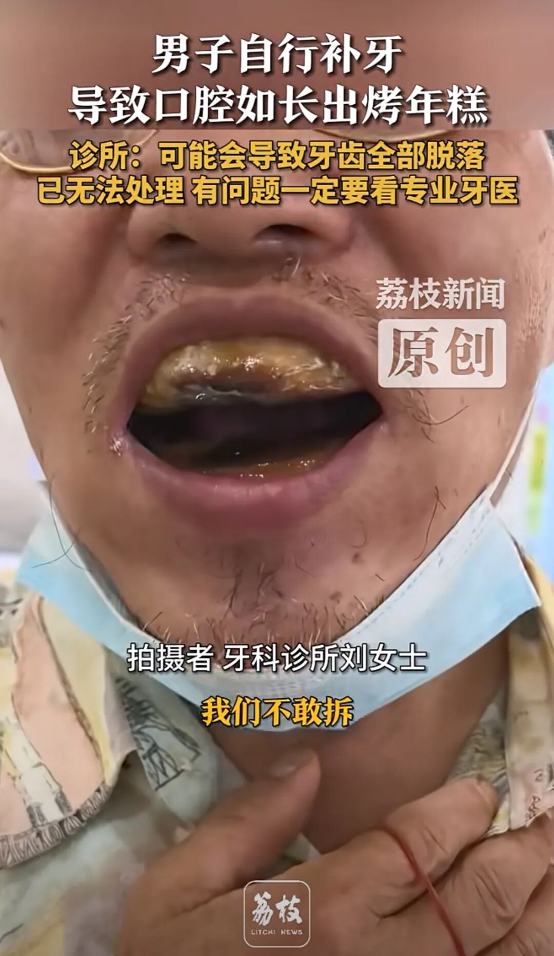 男子买5元材料自行补牙,口腔长出“烤年糕”?医生无奈:没人敢拆……