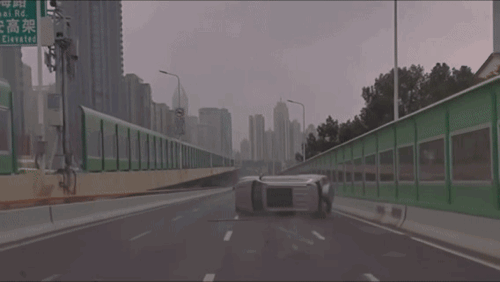 网友的行车记录仪画面显示,当时一辆沿南北高架西侧新闸路下匝道中间车道行驶的银色SUV向左变道,左侧车道上的黑色SUV突然加速,撞上银色SUV。撞击发生前,黑色SUV刹车灯并未亮起。银色SUV被撞后,向右打偏,又撞上右侧另一辆正常行驶的SUV,随后侧翻。