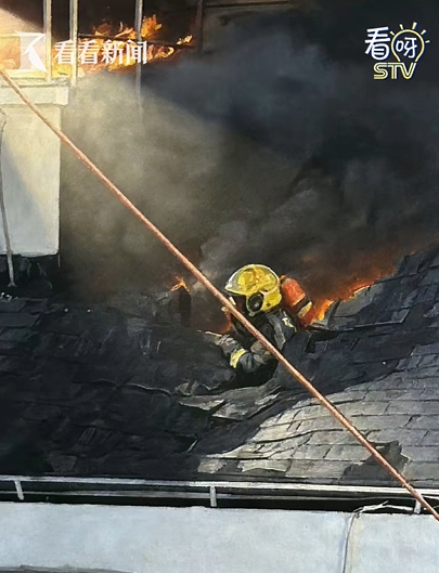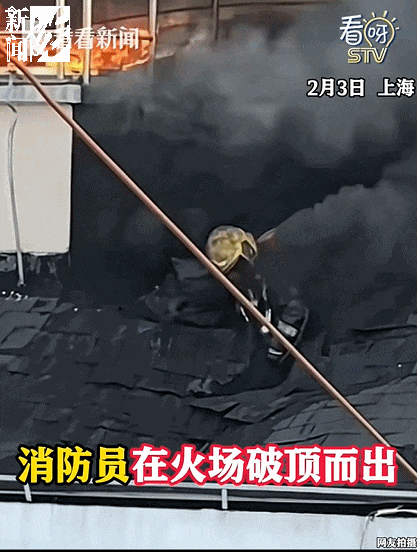 沪一居民住宅发生火情,消防员破顶而出!网友:他们比火焰更燃