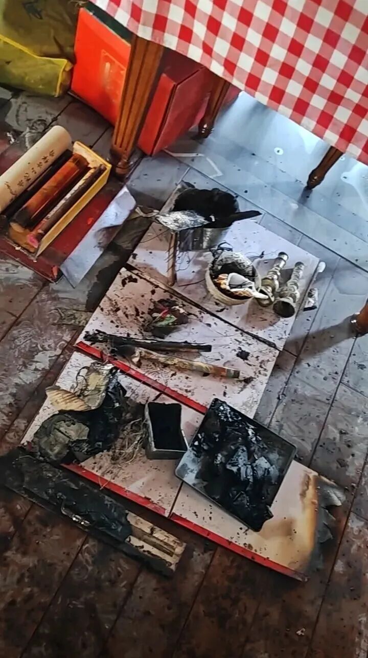 室内祭祀场景中,佛龛、布帘、纸制品、木质家具等可燃物,在密闭/半密闭房间会快速被引燃,隐蔽性更强、蔓延速度更快、危害性更大!