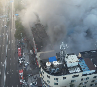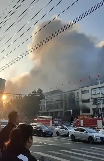 山东胶州一商贸市场发生火灾,现场浓烟滚滚,当地通报:未发现人员伤亡和被困