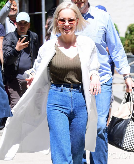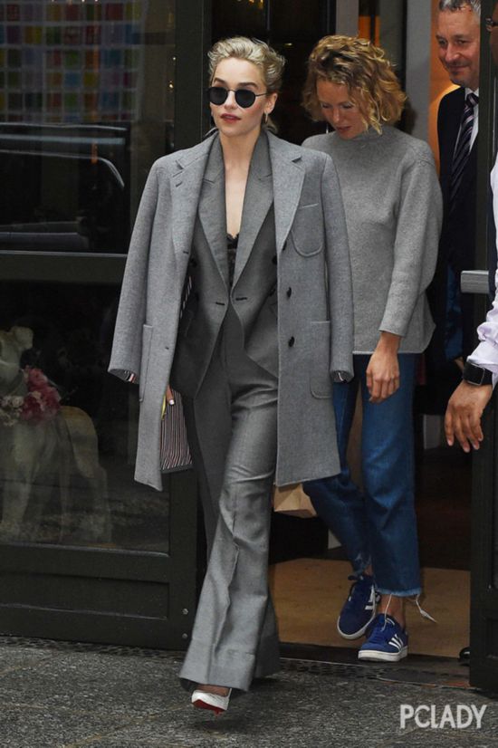 Emilia Clarke也深知自己离不开低领元素,无论是裙装还是西装,都会选择低领口的设计和内搭。配上显腿长的尖头高跟鞋,妹子们还不赶紧做笔记。