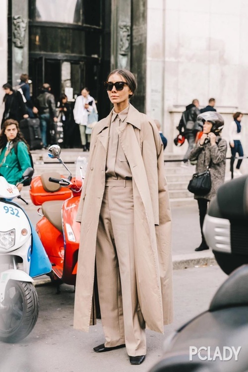 通常时尚博主们喜欢延续这种色系的简单高级感,用同色系进行搭配叠穿。