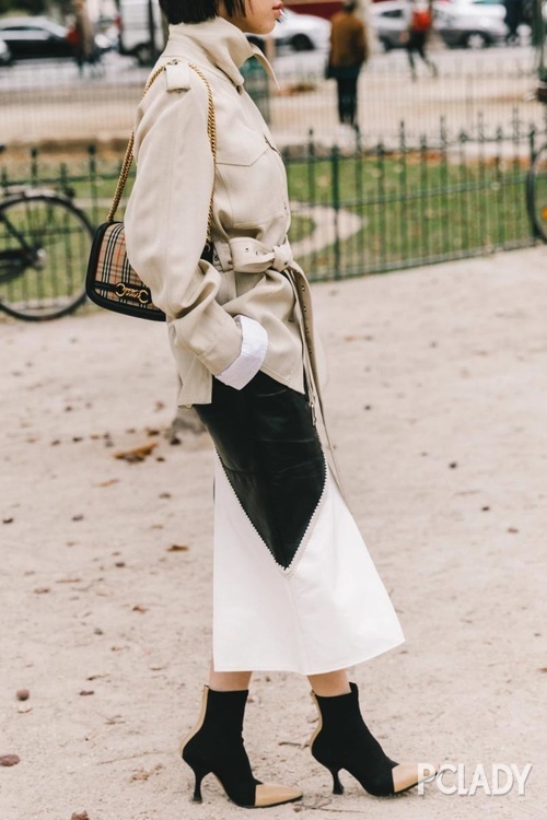 利用单品的不同材质来区分造型的层次感,不加过多的花纹和修饰,以极简风为主。
