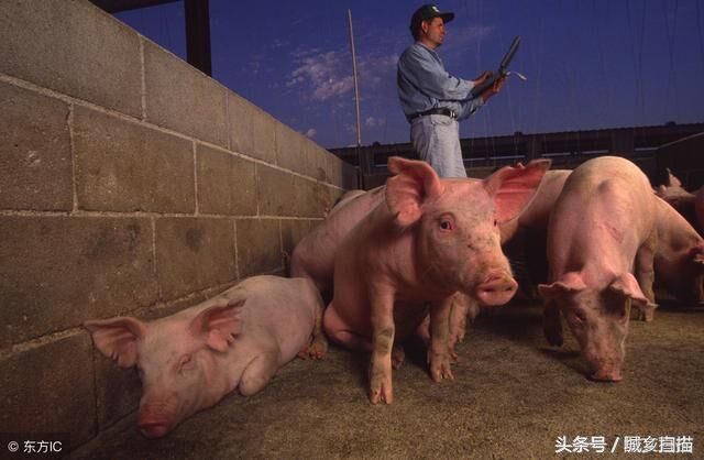 美国农民也养猪,美国人除了主吃牛肉外,近几年也开始喜欢上了吃猪肉,因此养猪的农民越来越多。很多农民当上了农场主,专门养猪卖钱。图为美国一养猪农民正在猪圈边使用计算机统计生猪生长情况的数据。