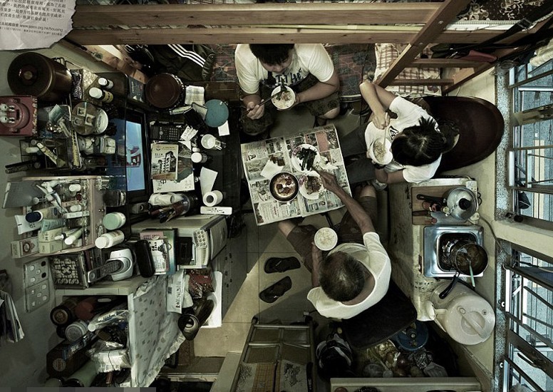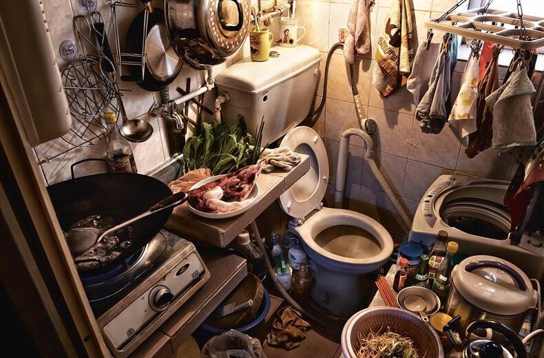 狭窄的空间让人们不得不服从,拥有自己的厨房和卫生间是幸福的,几乎大多数低收入的香港人都没有这种生活。